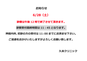 6/28(土)は午前12時で終了させて頂きます